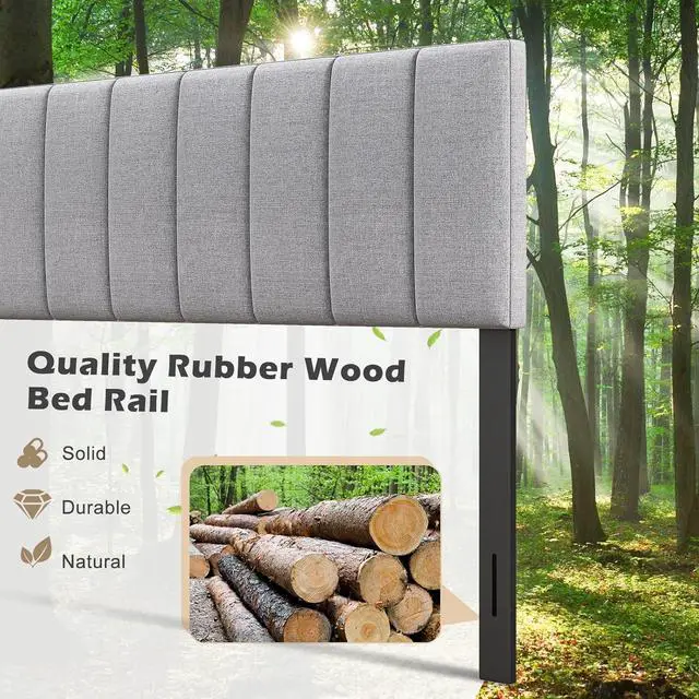 Solid Rubber Wood Bed Rails: Delicately made of natural rubber wood, the adjustable headboard features higher hardness to enable years of use. Meanwhile, the reserved slots make it easy to attach the headboard to your bed.