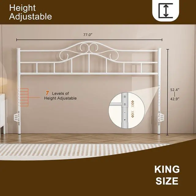 Adjustable Height Headboard: Crafted with powder-coated iron for a sturdy, lasting construction, this height-adjustable headboard features 7 different mounting positions and so you can choose suitable height from 42.9 - 52.4 " according to your needs