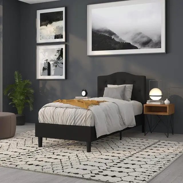 Black fabric upholstered panel headboard,