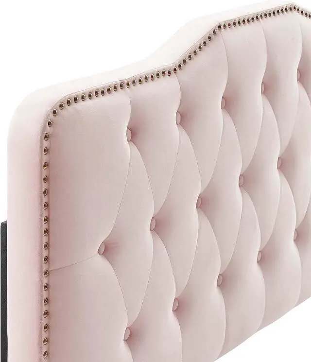 BUTTON TUFTED DESIGN - Introduce glam deco style and vintage modernity to a master or guest bedroom with this full/queen headboard featuring button tufting, nailhead trim, and a charming silhouette