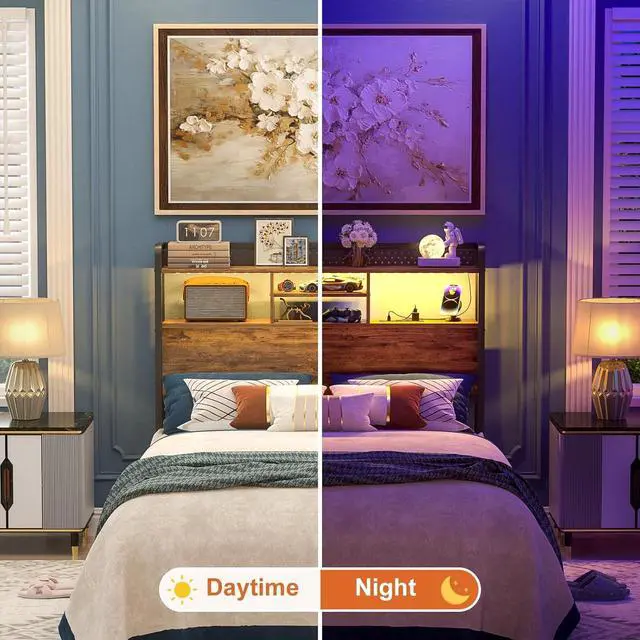 Headboard With Convenient Charging StationThe Headboard features 3 standard sockets & 2 USB charging ports and the 6.5FT charging cable perfectly solves your charging needs. Whether it' s a phone, tablet, smart watch, gaming gear or other electronic devices, you can easily charge within your reach, without having to get up to search for an outlet.