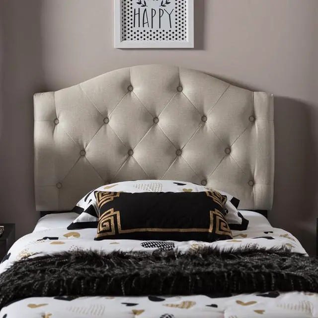 Materials: Solid hardwood and plywood, light beige polyester fabric