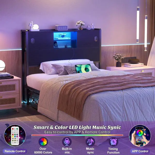 With Multi-functional/Customizable LED LightSliding door twin headboard with smart LED light has over 60, 000 DIY color options, it can be controlled and created by APP. Featured with music sync function, can change the lights color with the rhythm of the sound and music. Light elevate your sleeping life and add a vibran atmosphere for different styles and occasions, also you can easy to get item on twin headboard only.