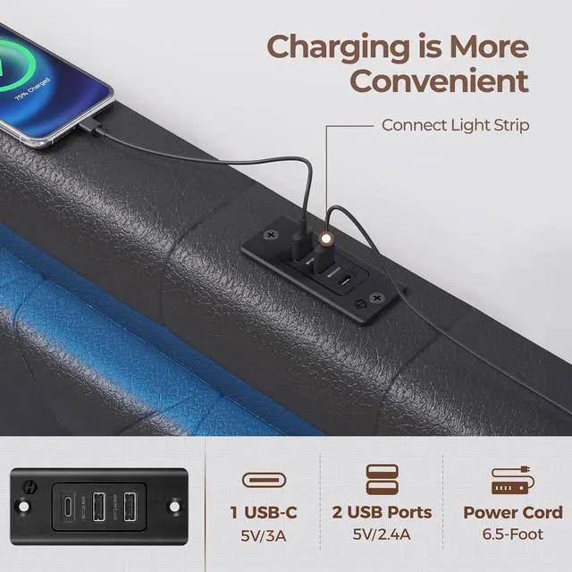 Type C Ports: Effortlessly control it via remote or app. Choose from over 60, 000 colors to set the ideal mood for any music genre. Sync the lights to the music for a dynamic party vibe. It also doubles as a charging station for your phone, ensuring it stays powered while you relax in bed.