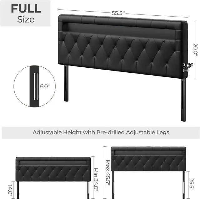 All for Your Comfort & Elegant Style: Upholstered headboard is filled with high-density sponge, providing the utmost comfort and back support when you lean on it to read, surf the Internet, or chat with your partner before falling asleep. Additionally, the leather material used is simple elegance and easy to clean. The surface of the black headboard is designed with a diamond-shaped pattern, adding a touch of sophistication