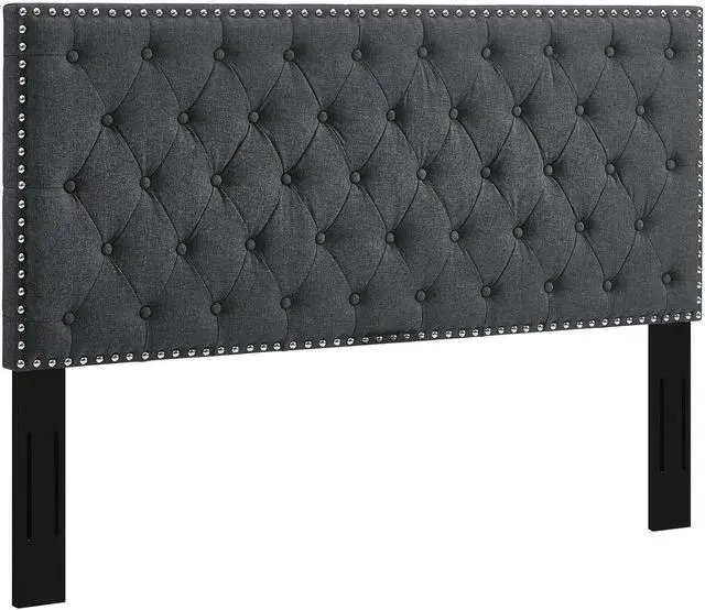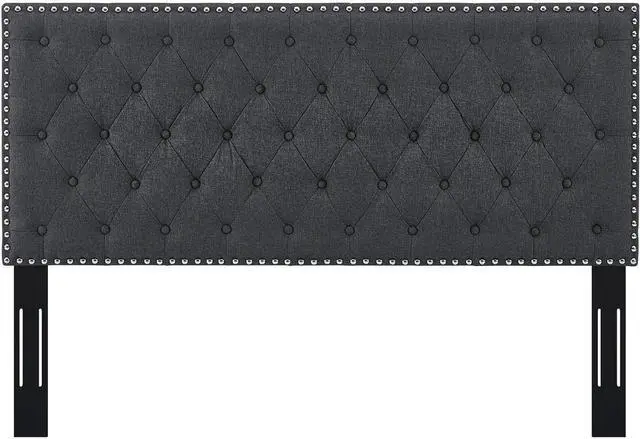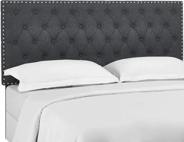UPHOLSTERED HEADBOARD - Enhance your bedroom decor with this linen fabric headboard for full or queen size bed frames. Helena features a classic metal nailhead design with inset trim
