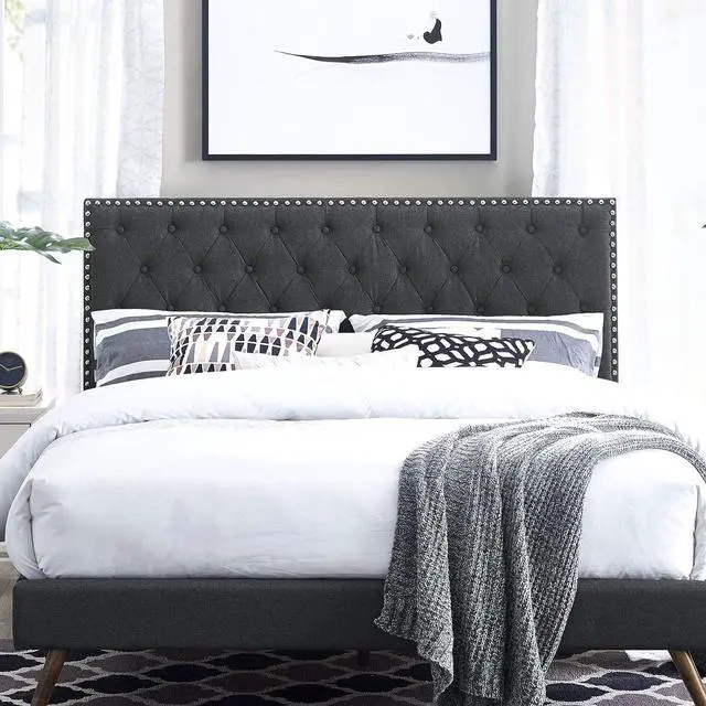 SUPERIOR CONSTRUCTION - Sturdy wide leg posts made of black-stained poplar wood offer maximal stability. This tall, upholstered fabric full or queen headboard is made of durable fiberboard