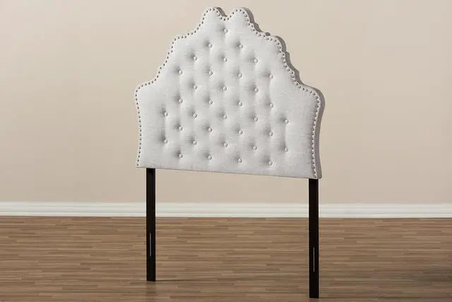 Modern and contemporary headboard Constructed of solid rubberwood and MDF board Foam padded and upholstered in polyester fabric Curvaceous style line Button tufting design