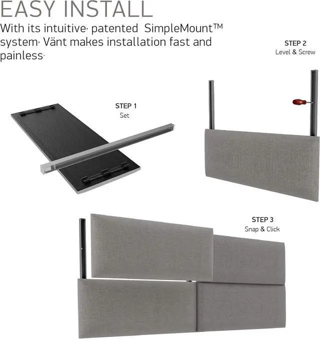 SIMPLE INSTALLATION- Each box of VANT panels takes approximately 5 minutes to install with our patented Simple Mount TM system. Our patented anchorless screws are designed with extra wide threads to grip the drywall so the panels are firmly held in place. No studs or anchors will be needed when mounting your panels onto drywall.