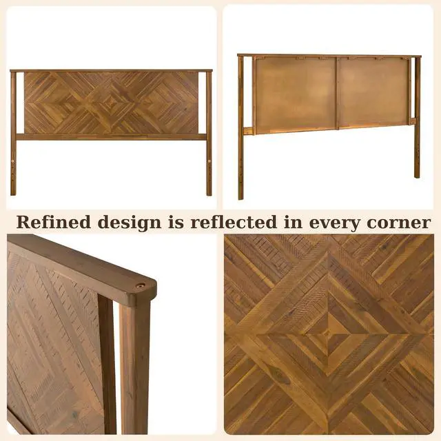ELEGANT RUSTIC DESIGN: Showcasing a herringbone pattern and dark brown finish, our king headboard only brings rustic charm to your bedroom; The king size headboard pairs timeless style with functionality, enhancing your decor effortlessly