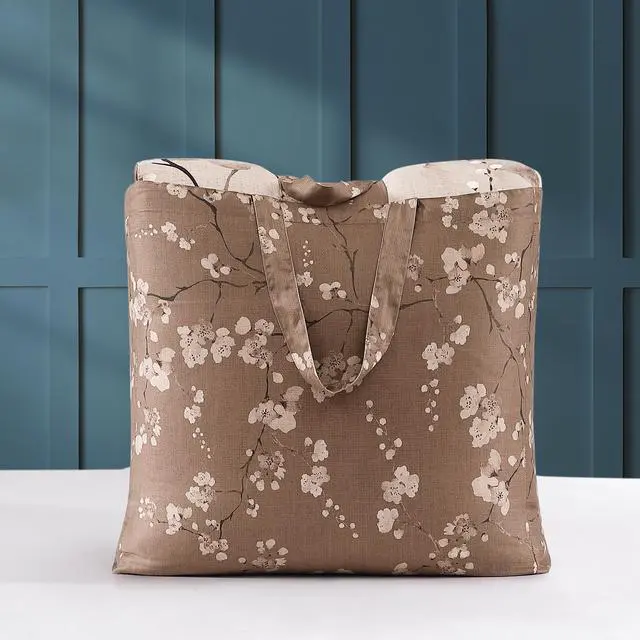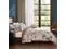 Like cherry blossoms on a winter day, the Bebejan Blue Blossom 5 Piece Reversible Comforter Set exhibits an array of cerulean blue blossom branches on a cool taupe background. The reverse complements the front perfectly with a dark brown based, tonal allover print. Textures and muted branches of the alluring blue color are printed on the square pillow, while the graceful blossom branch is embroidered on the oblong pillow. This 100% cotton sateen 5 piece set includes 2 shams, an 18" x 18" printed pillow, and a 22" x 12" embroidered pillow.