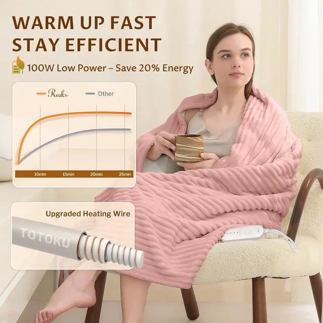 Warm your winter with our heated throw blanket electric, which has 5 heating levels and a temperature range of 86°F to 113°F. Color: Pink Size: Throw Fabric type: Flannel, Sherpa Special feature: Skin friendly, Washable