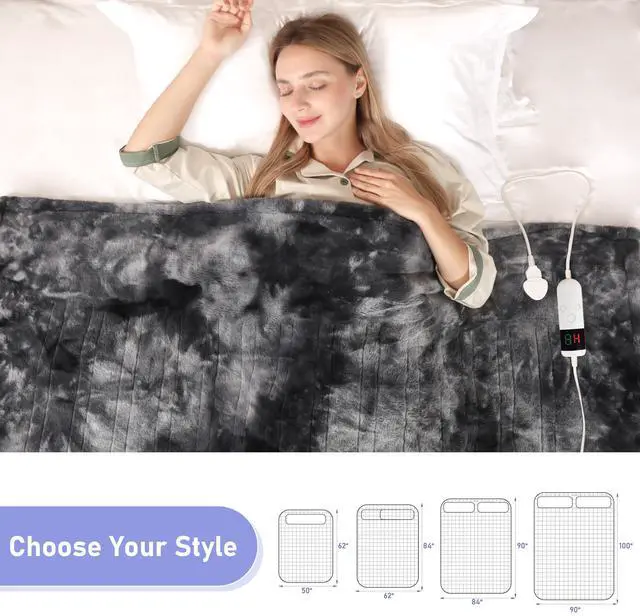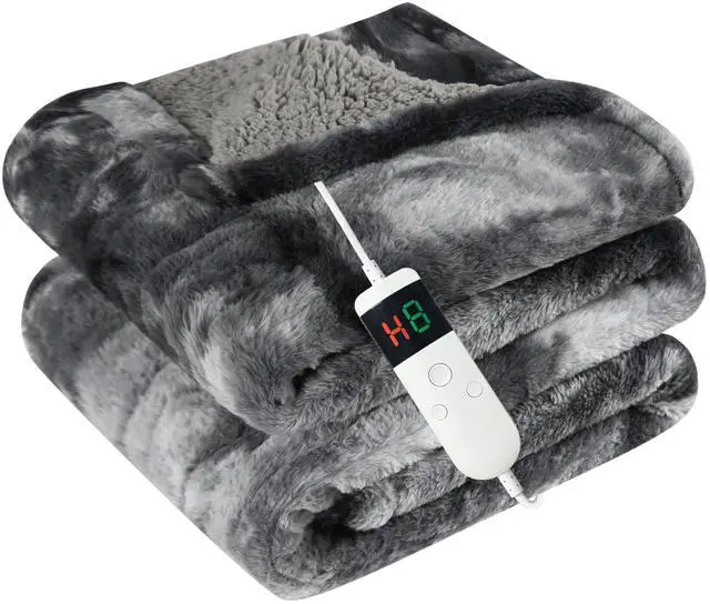 Cushious Electric Heated Blanket Throw 50''x60''size Faux Fur Heating Blanket 10 Heating Settings, 1-8h Timer & Overheat Protection, Machine Washable, Soft Flannel and Sherpa Full Body Warmth