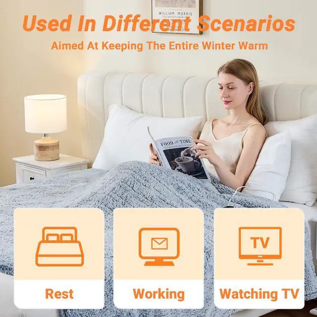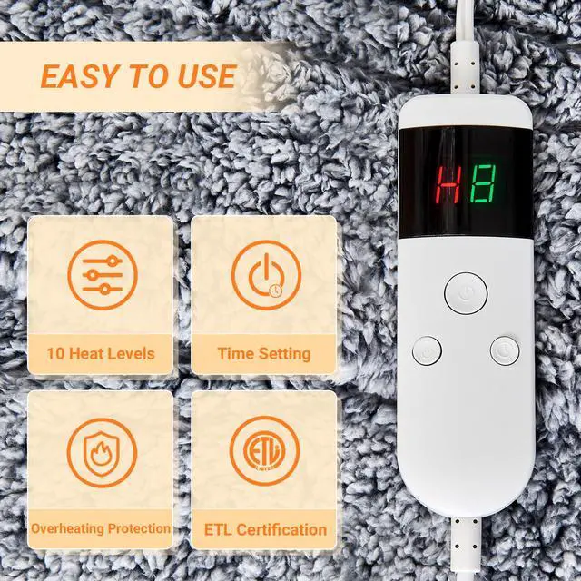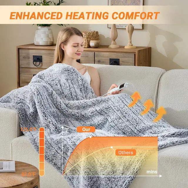 Heated Blanket Heated Throw, Electric Blanket 50"x60" Heating Blanket with 8 Hours Auto Off 10 Fast Heating Levels Machine Washable Sherpa Heated Blanket with Overheating Protection