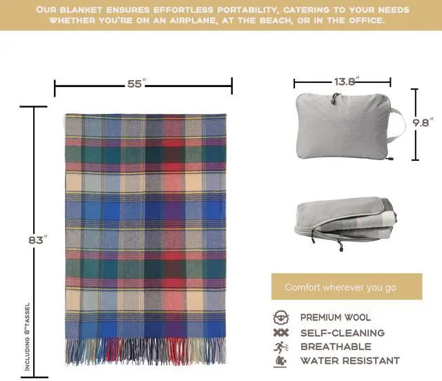 Cozy-Soft Wool Travel Blanket is just the right size to wrap you in comfort while you travel. This thin fleece throw blanket is easy to care for and machine-washableVisit our store for more Scarf products and other scottish gifts