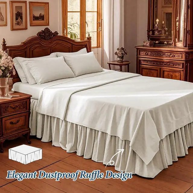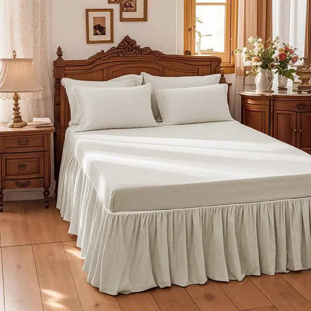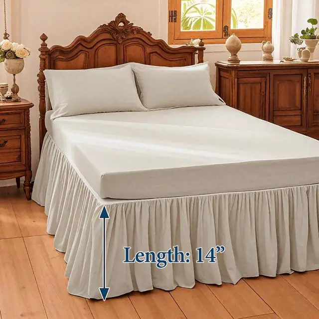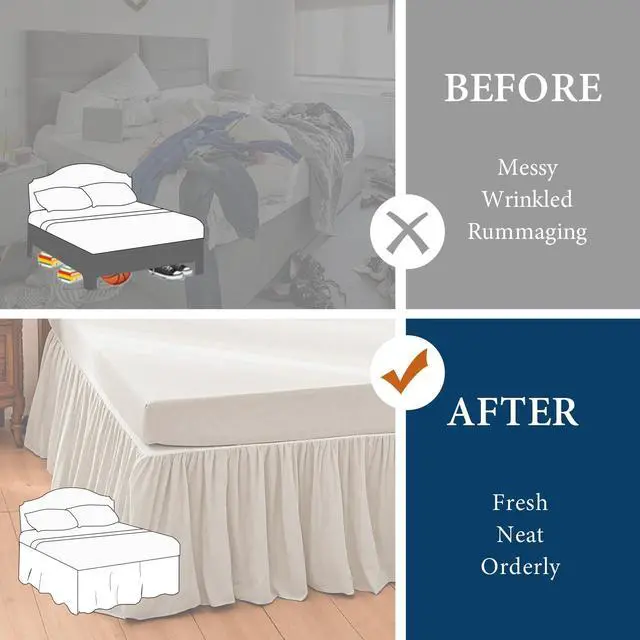 As a dust ruffle wrap around bed skirt queen, bedskirts queen size 14-inch drop is a storage-concealing tool used for hiding unsightly bed frames, box springs, and cluttered under-bed items (like luggage or extra linens). Its capable of turning messy spaces into polished, inviting areasespecially useful for small apartments where storage is limited.