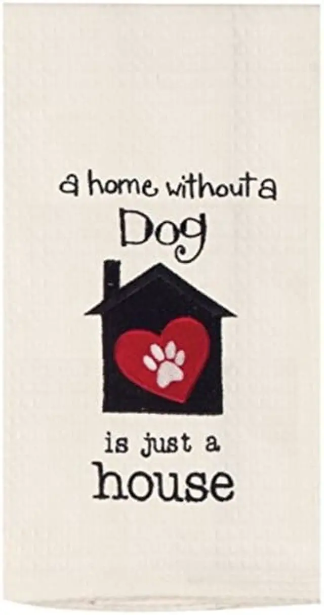 Dog lovers and owners, this dish towel was designed for you. Show off your pup-loving nature in your kitchen by decorating with this adorable waffle weave towel.. Measures 28 x 18 inches. Made of 100% cotton, lint free and fast-drying. Made by Kay Dee