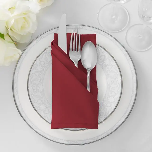 Perfect for buffets, banquets, holiday gatherings, and home dining, these cloth dinner napkins help create a polished, coordinated look for your table decor. Whether you're hosting an elegant wedding reception, decorating a seasonal tablescape, or simply enhancing everyday meals, they provide a polished finishing touch that ties your entire table decor together.