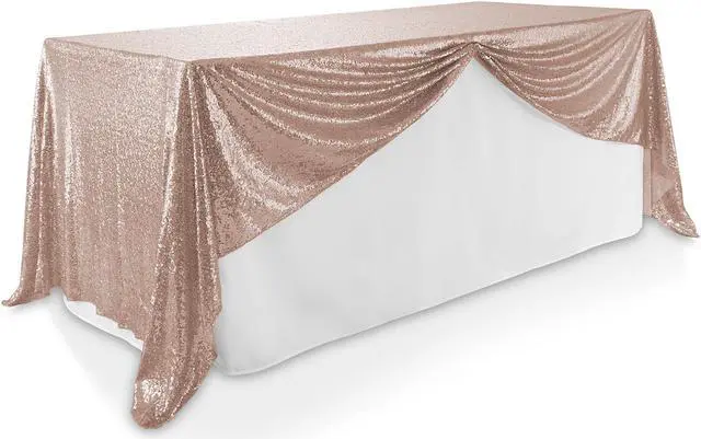 Lann's Linens 60" x 102" Rose Gold Sequin Tablecloth, Sparkly Rectangle Table Cloth for Wedding, Party, Banquet