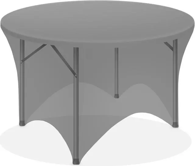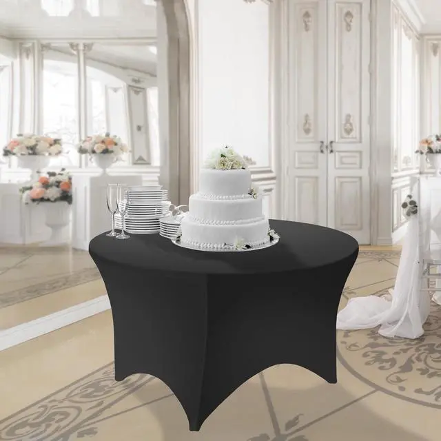 Create a sleek, formal look with this well-appointed, fitted tablecloth. Featuring premium-weight Spandex fabric designed to repel wrinkles and stains, this stretchy, versatile fitted round tablecloth neatly covers and transforms standard folding tables into highly functional yet elegant settings for all occasions. Elevating style becomes simple with its taut, clean lines and modern appeal to suit weddings, restaurant or hotel banquets and buffets, trade shows, holiday parties, outdoor events, and much more.