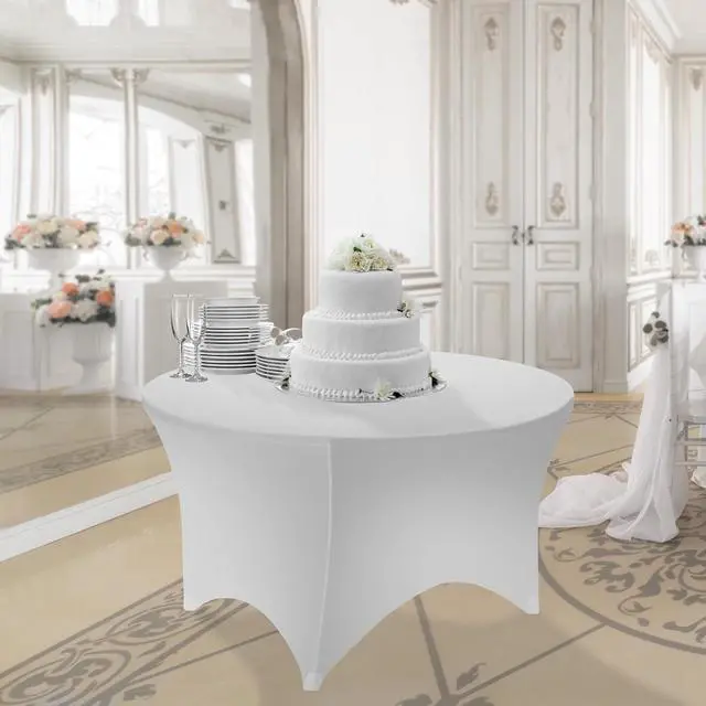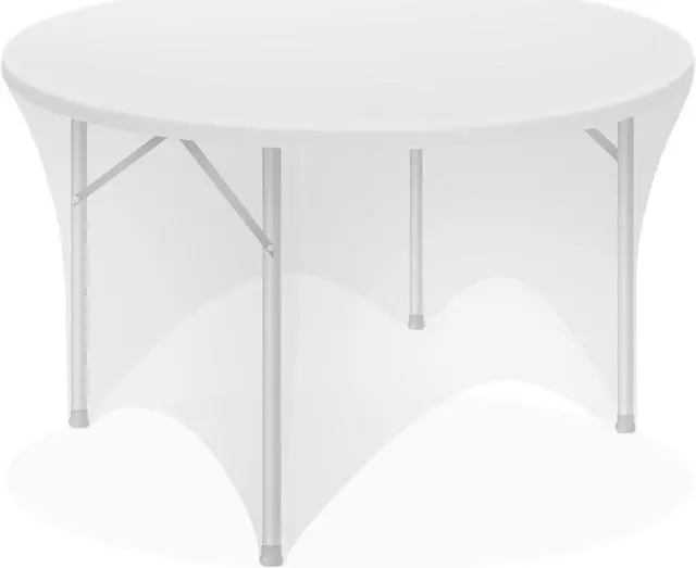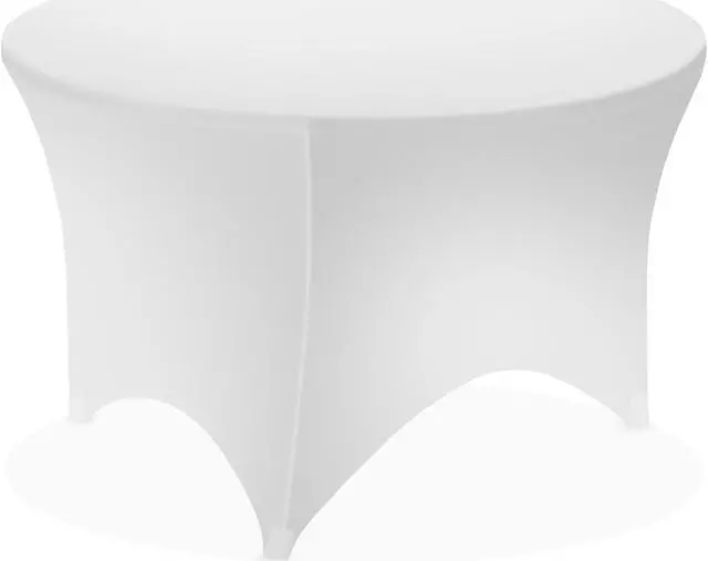 Create a sleek, formal look with this well-appointed, fitted tablecloth. Featuring premium-weight Spandex fabric designed to repel wrinkles and stains, this stretchy, versatile fitted round tablecloth neatly covers and transforms standard folding tables into highly functional yet elegant settings for all occasions. Elevating style becomes simple with its taut, clean lines and modern appeal to suit weddings, restaurant or hotel banquets and buffets, trade shows, holiday parties, outdoor events, and much more.