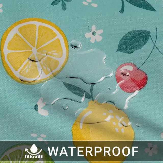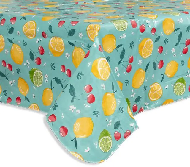 Elrene Home Fashions Lemons & Cherries Waterproof Tablecloth, Oblong (Rectangle), 60" x 102"