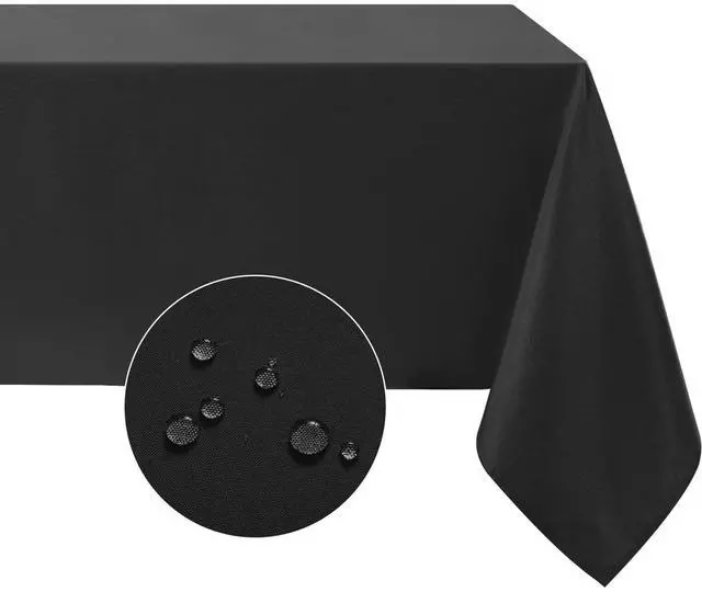 Rectangle Tablecloth, Waterproof & Stain Resistant Table Cloths Wrinkle Free Fabric Washable Polyester Table Cover for Dining/Party/Outdoor/Camping - 60 x 84 inch, Black
