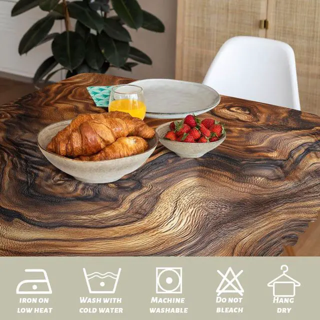 Crafted from 100% high-quality polyester fabric, our tablecloth is not only soft and durable but also easy to clean.Simply hand wash with cold water or machine wash in a gentle cycle, and it will be as good as new. Dark colors should be washed separately while laying it flat to dry and lightly ironing if necessary.