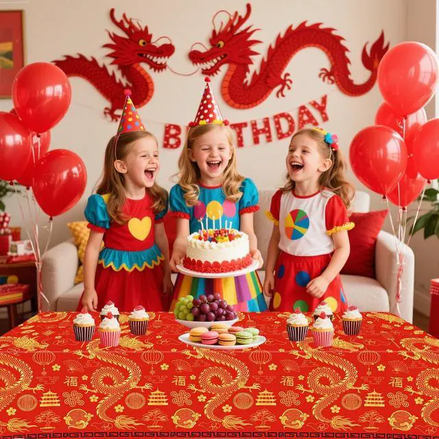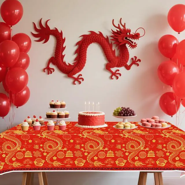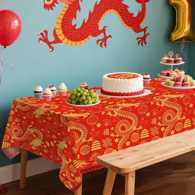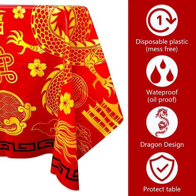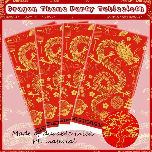 Chinese Japanese Style: This Hibachi party tablecover decoration has a Chinese Japanese party style, such as Chinese dragons riding over a cloud. These Hibachi decorations can immerse you in the birthday party atmosphere of China and Japan at your birthday party.