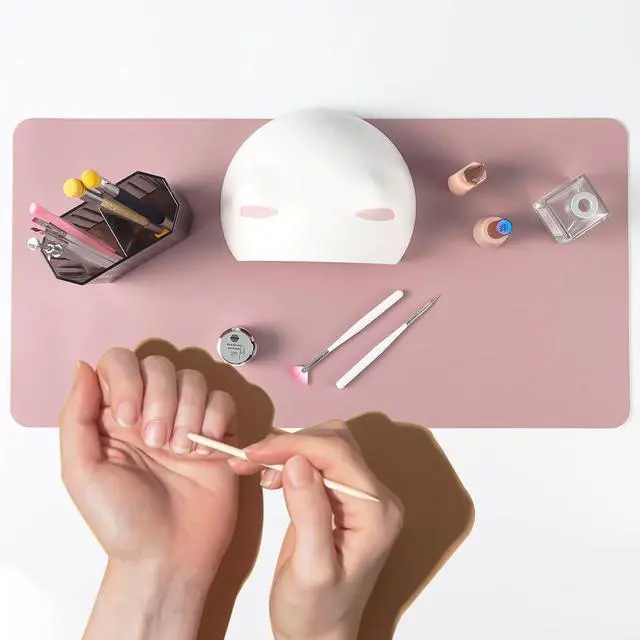 Premium MaterialThe nail table pad desk mat is made of high-quality microfiber leather, which is very soft to the touch and comfortable to use. It has excellent scratch resistance, waterproof and heat-resistant, can prevent stains and dirt on the table,bringing you a more professional and clean decoration of the nail area, suitable for nail salons and home use
