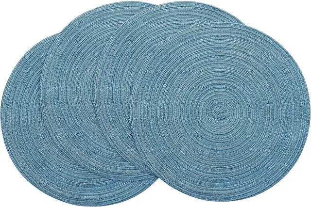 4/6 Pack 15 Inch Round Braided Placemats, Washable Heat Resistant Cotton Polyester Circle Place Mats for Kitchen Dining Table