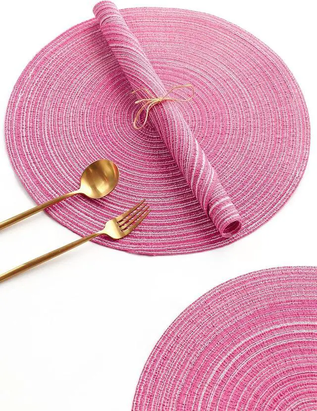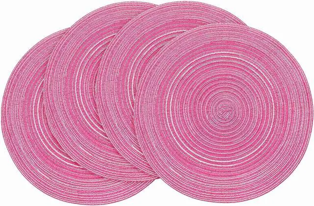 Tanvia 4 Pack 15 Inch Round Braided Placemats, Washable Heat Resistant Cotton Polyester Circle Place Mats for Kitchen Dining Table, Rose Red
