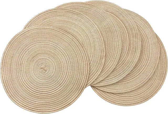 4/6 Pack 15 Inch Round Braided Placemats, Washable Heat Resistant Cotton Polyester Circle Place Mats for Kitchen Dining Table