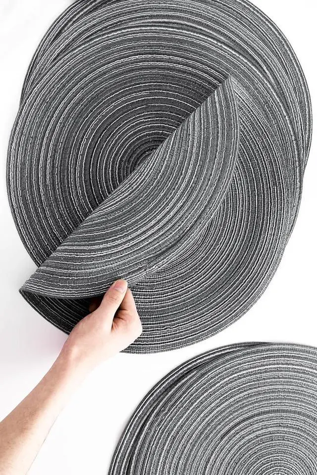 Tanvia 4 Pack 15 Inch Round Braided Placemats, Washable Heat Resistant Cotton Polyester Circle Place Mats for Kitchen Dining Table, Gray
