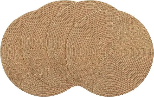 Tanvia 4 Pack 15 Inch Round Braided Placemats, Washable Heat Resistant Cotton Polyester Circle Place Mats for Kitchen Dining Table, Brown