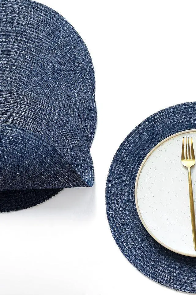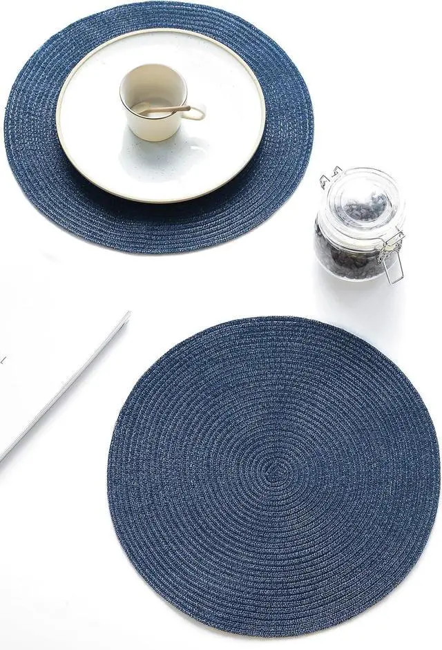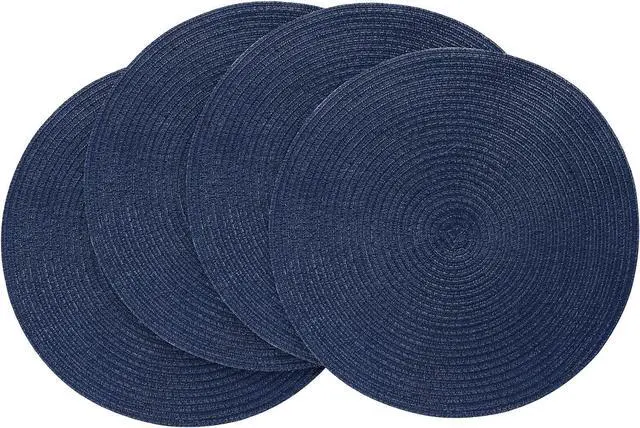 Tanvia 4 Pack 15 Inch Round Braided Placemats, Washable Heat Resistant Cotton Polyester Circle Place Mats for Kitchen Dining Table, Navy Blue