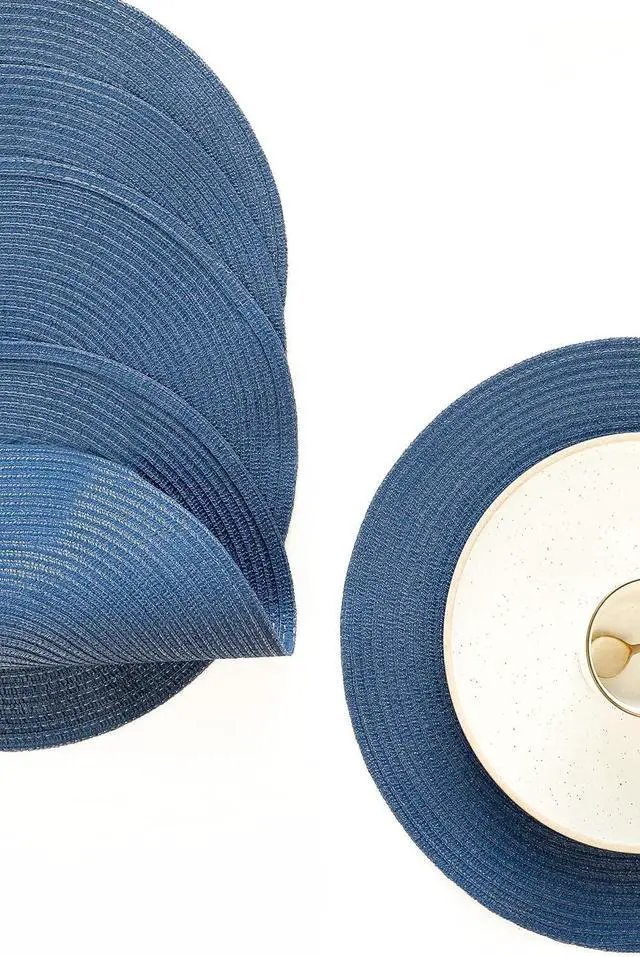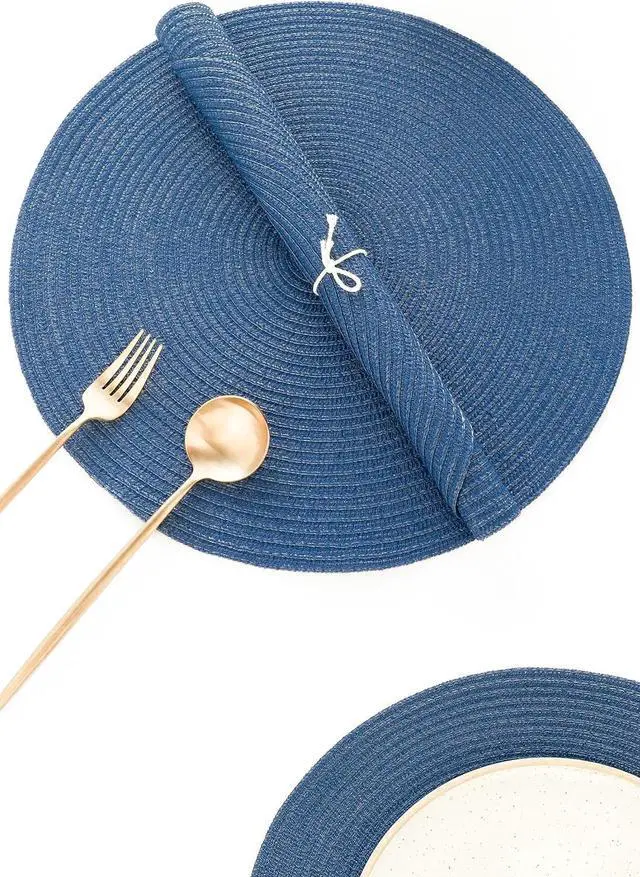 Tanvia 4 Pack 15 Inch Round Braided Placemats, Washable Heat Resistant Cotton Polyester Circle Place Mats for Kitchen Dining Table, Sail Blue