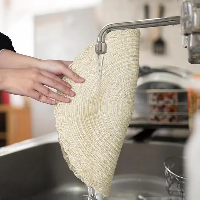 Our round braided placemats are designed to resist heat and stains, while also featuring a non-slip and anti-wrinkle design. This ensures that your table is protected from hot food, tableware marks, and scratches, while adding a stylish touch to your dining decor.
