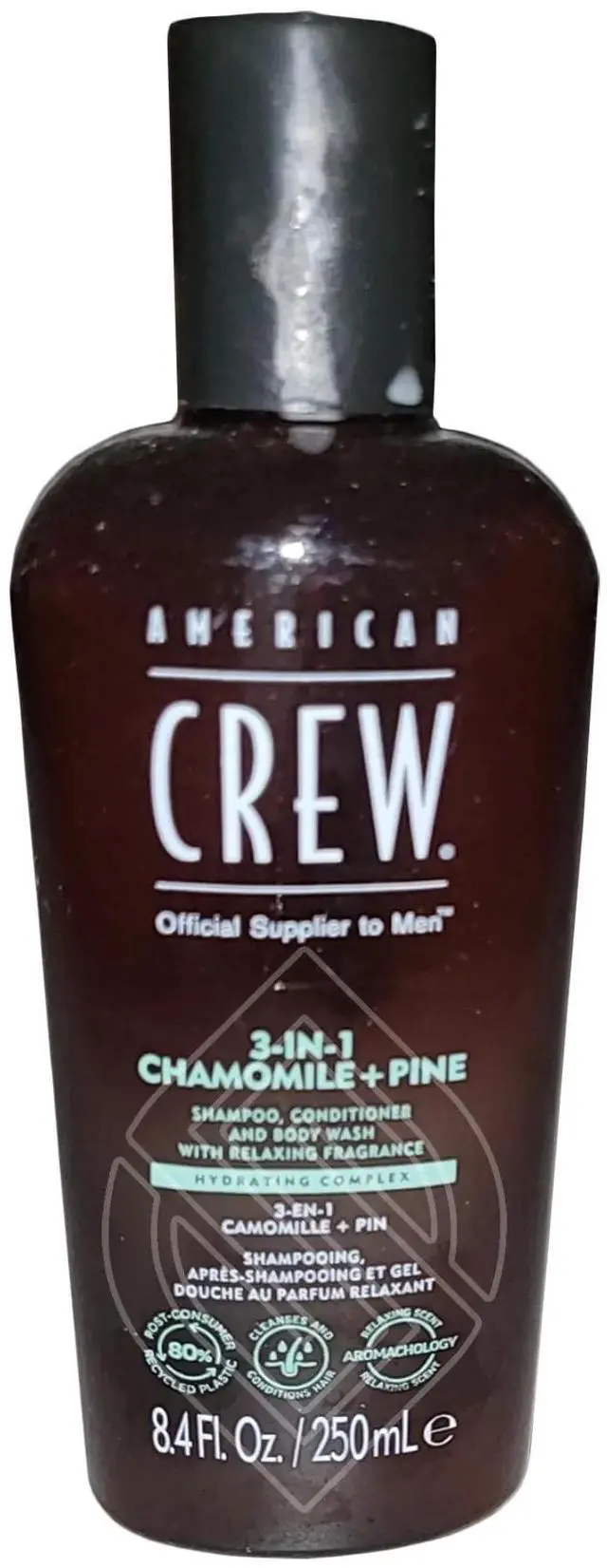 All-in-one shampoo, conditioner, and body wash formulated with relaxing Chamomile and Pine scent.