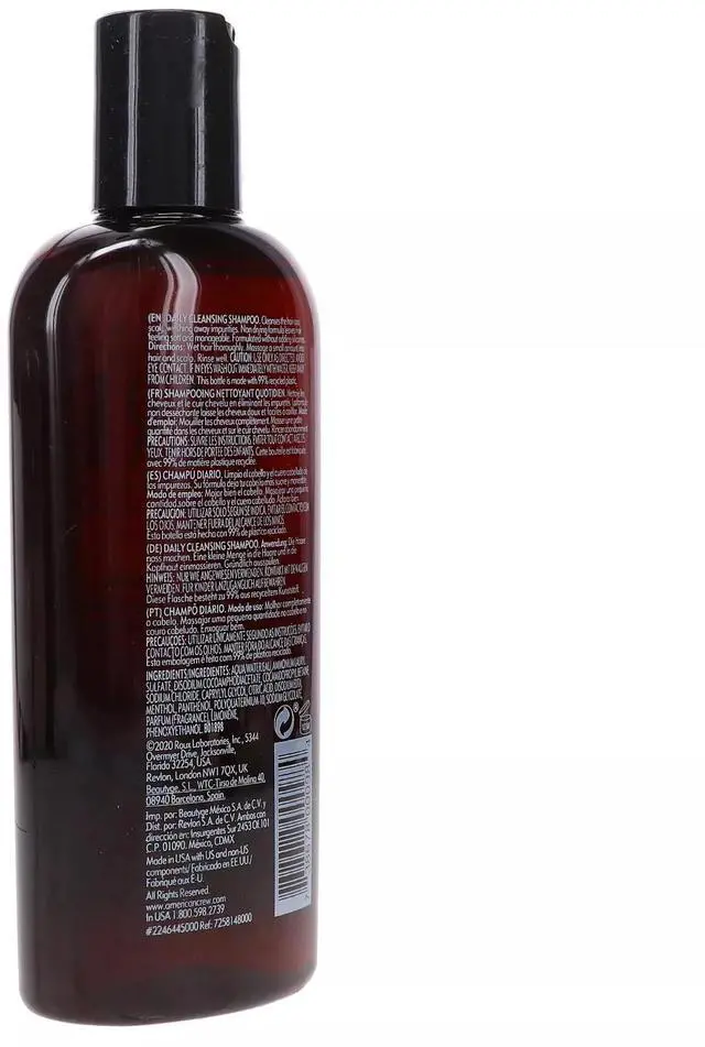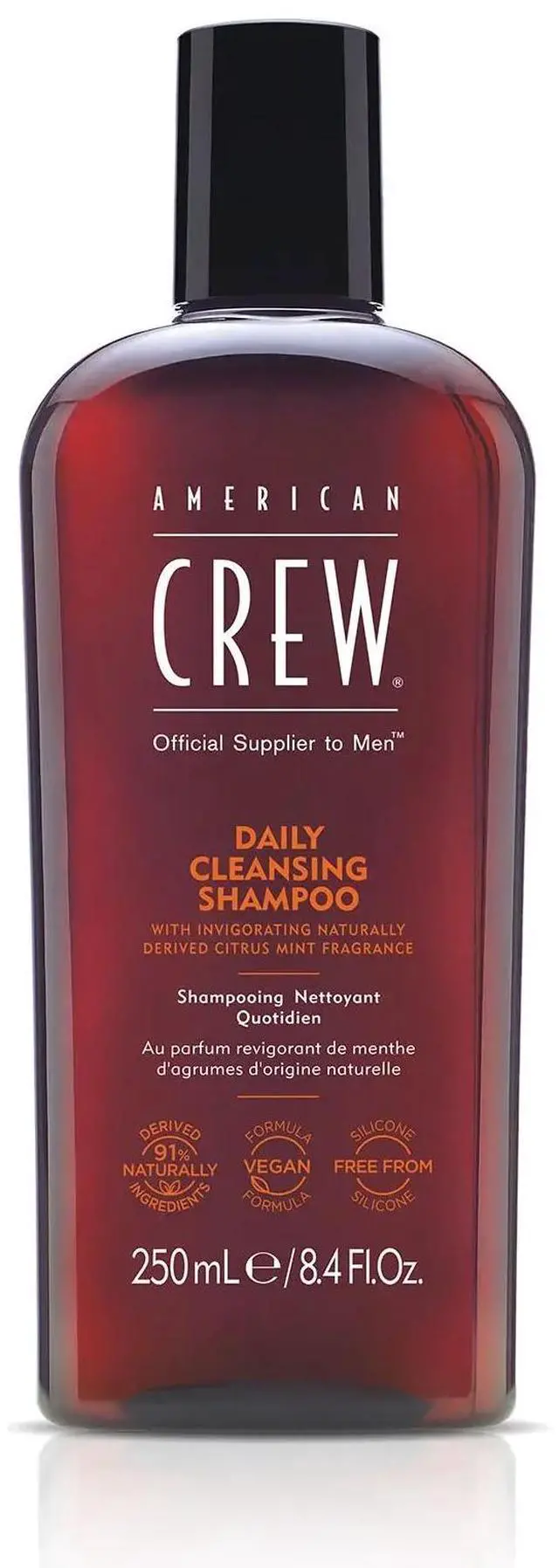 American Crew Daily Cleansing Shampoo 8.4 Ounce 250 Milliliters American Crew Daily Shampoo is a plant-based shampoo that is ideal for oily to normal hair. This is a gentle cleanser that won't strip natural oils from your hair and scalp and moreover helps to break down excess oil. This pH-balanced shampoo is enriched with rosemary and Thyme extracts to provide an invigorating and revitalizing action for your scalp and to provide protection from the effects of UV rays. Wheat Protein adds shine to your hair and strengthens it from within.