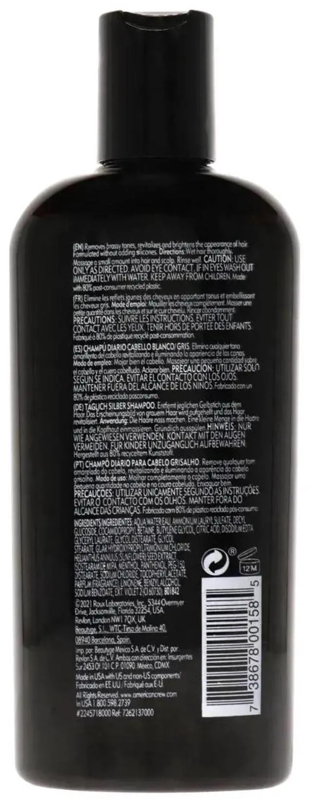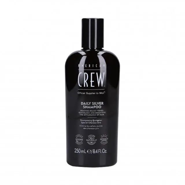 American Crew Daily Silver Shampoo For Gray Hair Maintenance 8.4 oz/250ml American Crew grey shampoo helps to keep your gray looking its finest. CI 60730 (Ext. Violet 2), found in American Crew Gray Shampoo, works to minimize yellow tones that gray hair can get due to minerals in the water, impurities in the air, and product buildup.