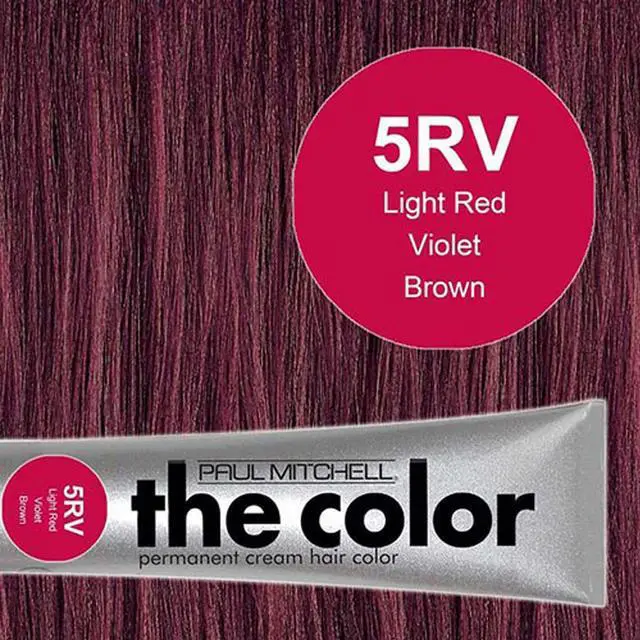 Paul Mitchell THE COLOR Permanent Cream Hair Color 3oz (5RV) Light Red Violet Brown Contains natural conditioners that provide long-lasting natural-looking low ammonia color with outstanding shine and condition. Full spectrum of inter-mixable colors and high lift colors and ultra toners. Developed with a beeswax base and other natural conditioners. Always mix Paul Mitchell The Color levels 1 to 10 with an appropriate developer in equal parts (1 to 1 ratio). Mix Highlift Series with Cream Developer (1 to 2 ratio) for maximum lift.