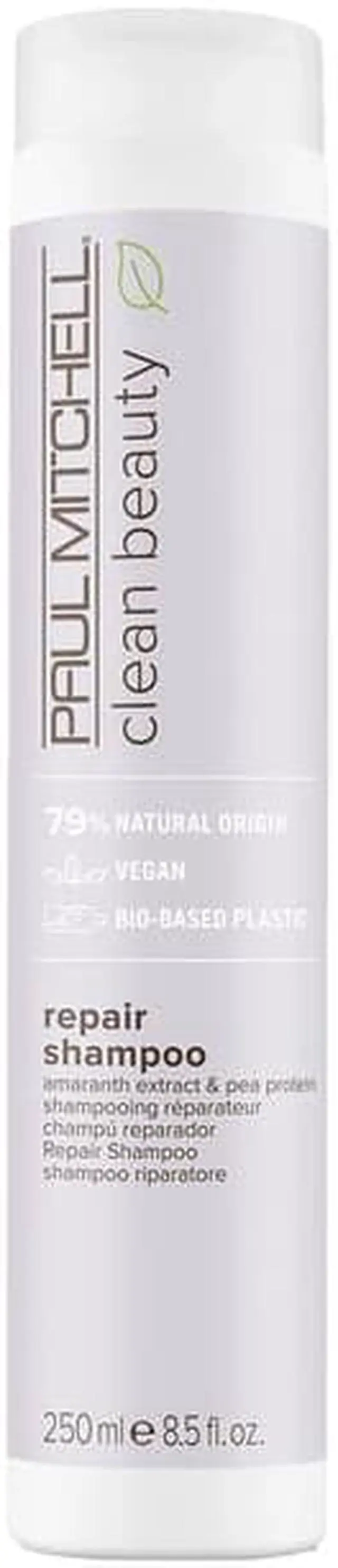 Repair Shampoo 79% natural origin. Enriched with amaranth seed extract and pea protein to repair, restore and protect strands, for softer, stronger hair.