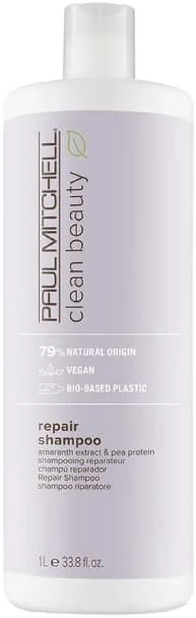 Repair Shampoo 79% natural origin. Enriched with amaranth seed extract and pea protein to repair, restore and protect strands, for softer, stronger hair.