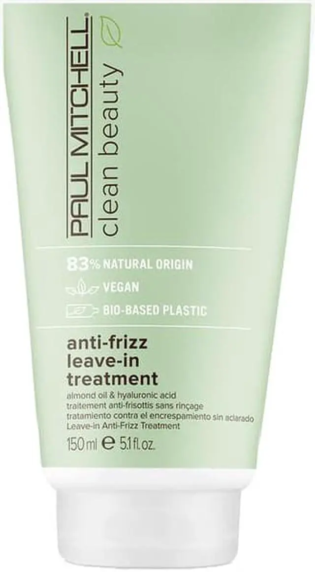 Anti-Frizz Leave-In Treatment 83% natural origin. Enriched with almond oil and hyaluronic acid, this rich formula helps control frizz and protects against humidity for softer hair that's easier to style.