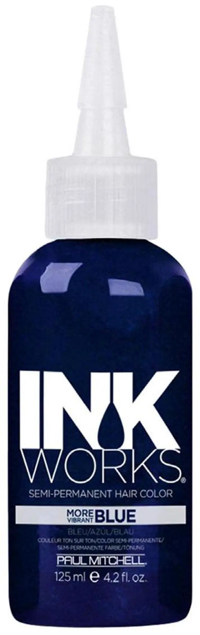 Paul Mitchell INKWORKS Semi-Permanent Hair Color 4.2 oz (BLUE) Spark your creativity and add a punch of brilliant color to any hair with 11 inter-mixable colors. A gentle vegetable base formula of pure vibrant pigments delivers exceptional shine and healthy conditioned results. Fun and Fashionable hair color designed for use on natural color-treated or pre-lightened hair. Use on darker shades or dilute with White INKWORKS. Pre-lighten and use straight for more intense color results.