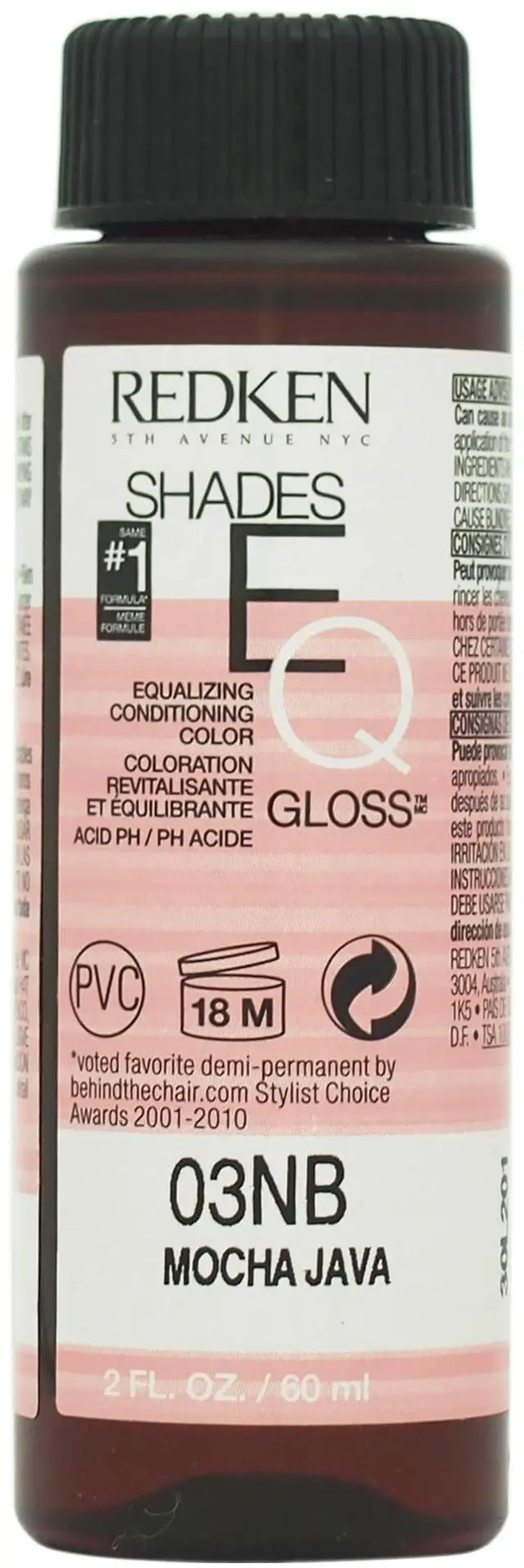 Redken Shades EQ Color Gloss 03NB - Mocha Java - 2 oz. Brand New. . These Conditioning Color Glosses are voted #1 demi-permanent hair color in the U.S. Provides healthy, shiny results with incredible conditioning, so you can glaze, refresh and correct with confidence..