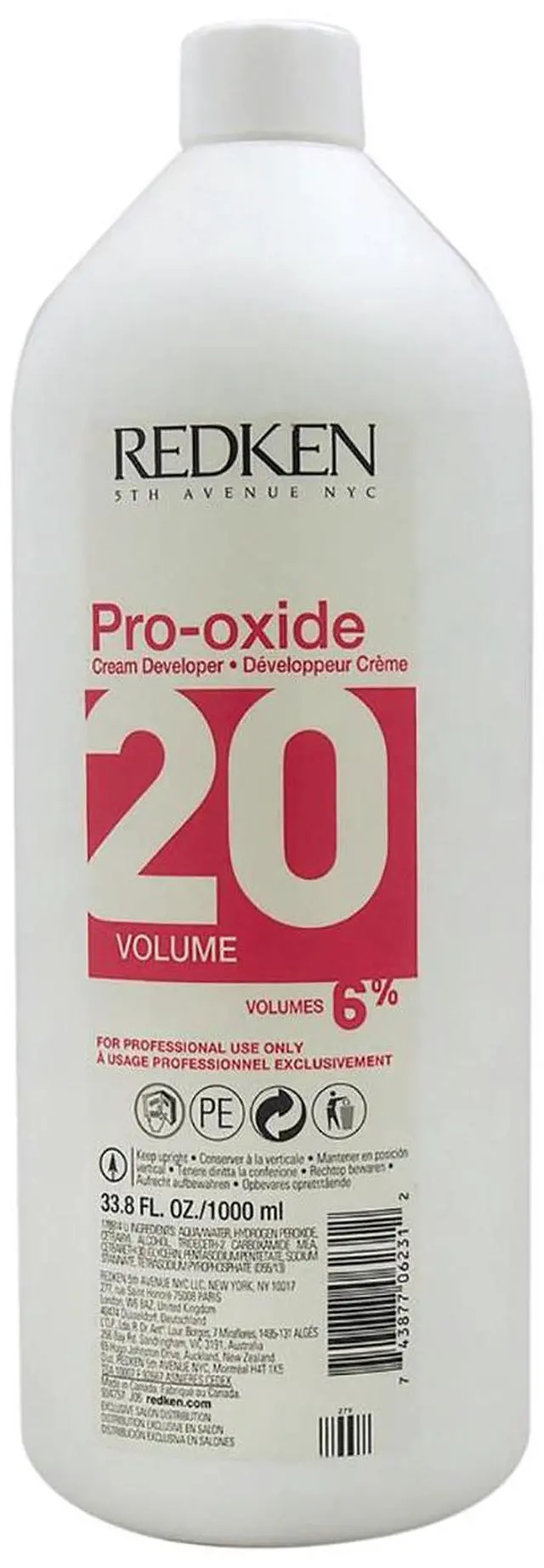 Redken Pro-Oxide 20 Volume 6% Cream Developer 33.8 oz/1000ml Redken pro-oxide cream developer peroxide is to be used with redken color fusion, color gels, and all redken lighteners. It has a super smooth consistency for easy mixing and application and provides predictable performance for all types.