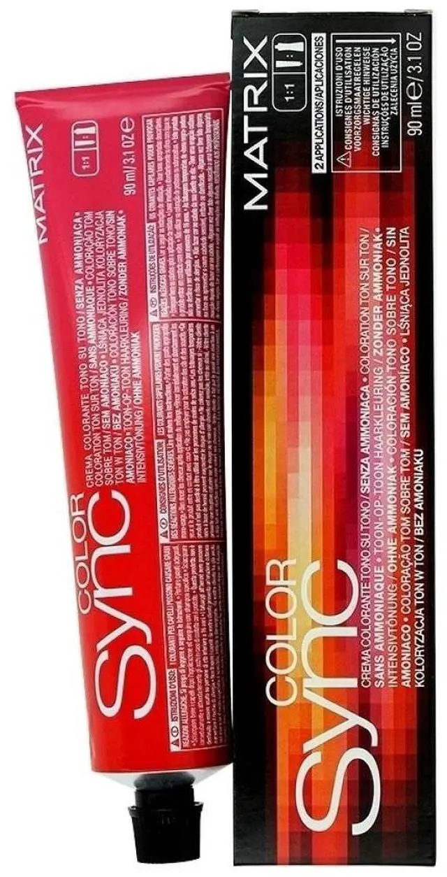 Matrix Color Sync Demi-Permanent Color No Ammonia! Discover the bold, rich full-bodied look of a tone-on-tone color. Hair is toned and polished; perfectly smooth with rich reflects from roots to ends. Includes shades for up to 75% grey coverage on light colors and up to 100% with darker hair color. *This is a professional product and should be used only by a trained individual. Seller is not liable for any adverse outcome resulting from the use of this product.