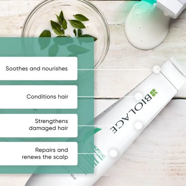 Inspired by the anti-bacterial and calming properties of the Mint Leaf, Biolage SCALPSYNC Scalp Conditioner weightlessly soothes and nourishes to condition hair and promote a healthy-looking scalp.